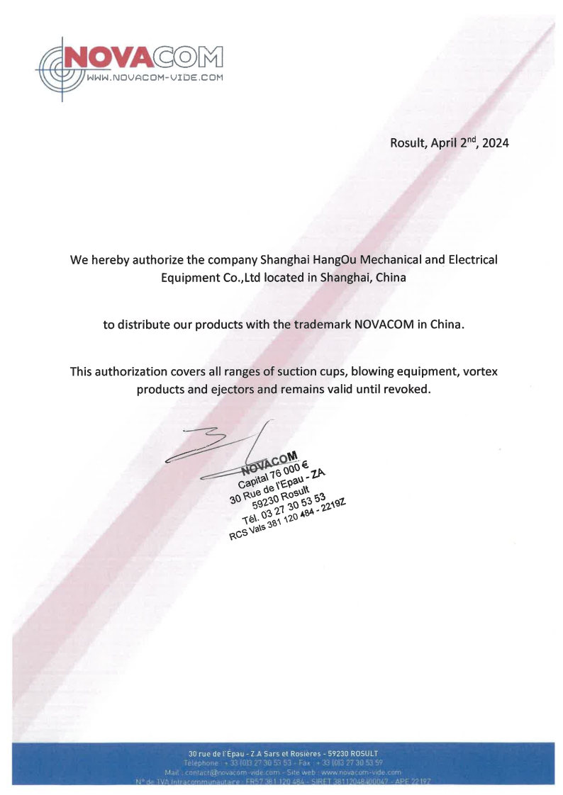 2024年法國NOVACOM工廠授權上海航歐中國區代理