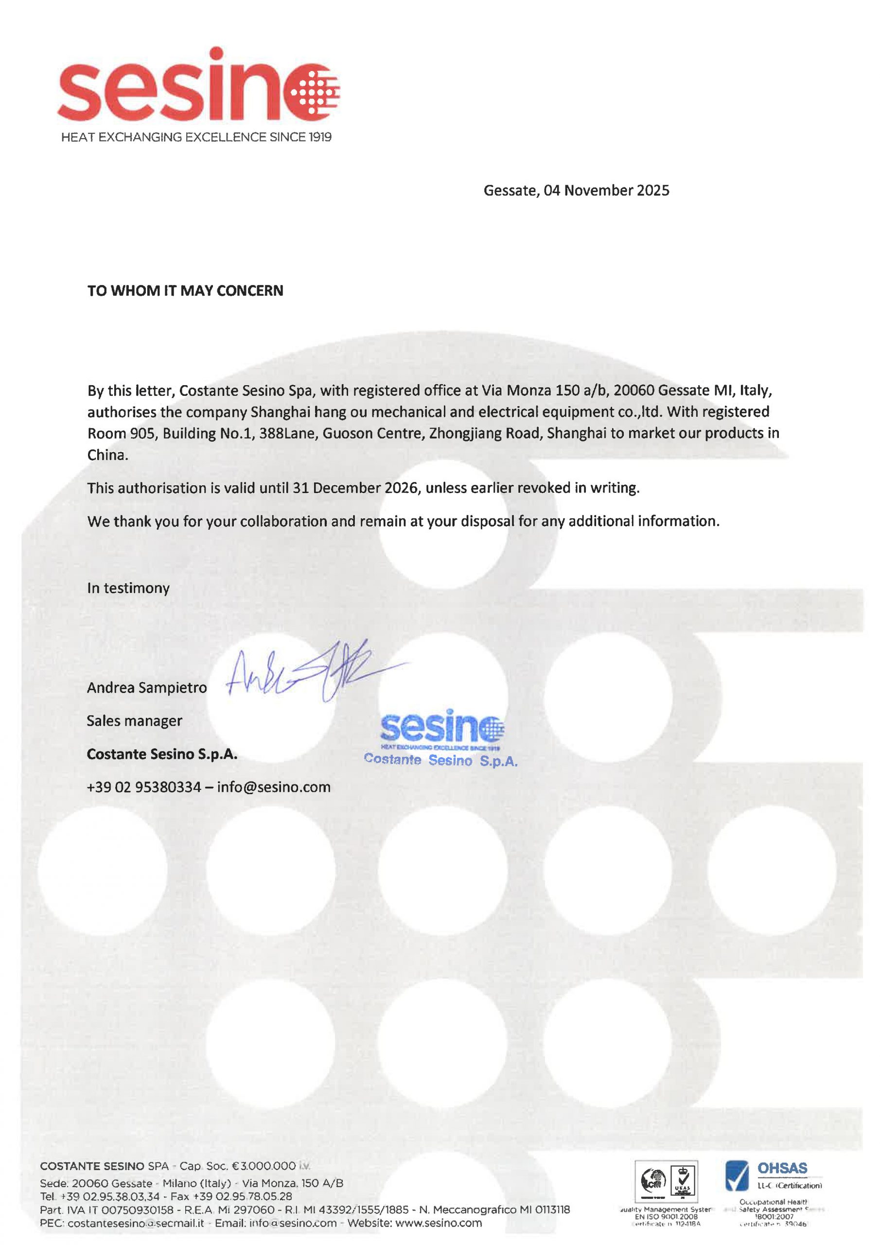 上海航歐機電設備有限公司 > 新聞中心 > 公司新聞 > 2025年意大利SESINO工廠授權上海航歐代理商