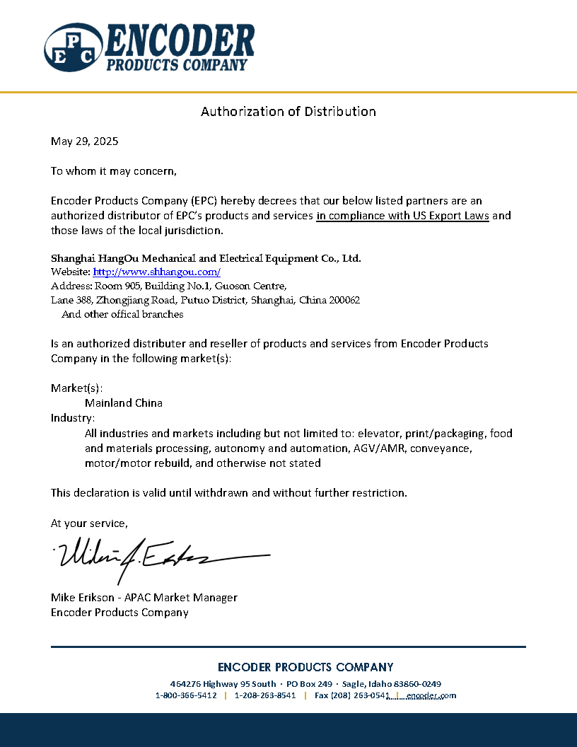 上海航歐機電設備有限公司 > 新聞中心 > 公司新聞 > 2025年美國ENCODER工廠授權上海航歐BRITISH編碼器中國區代理