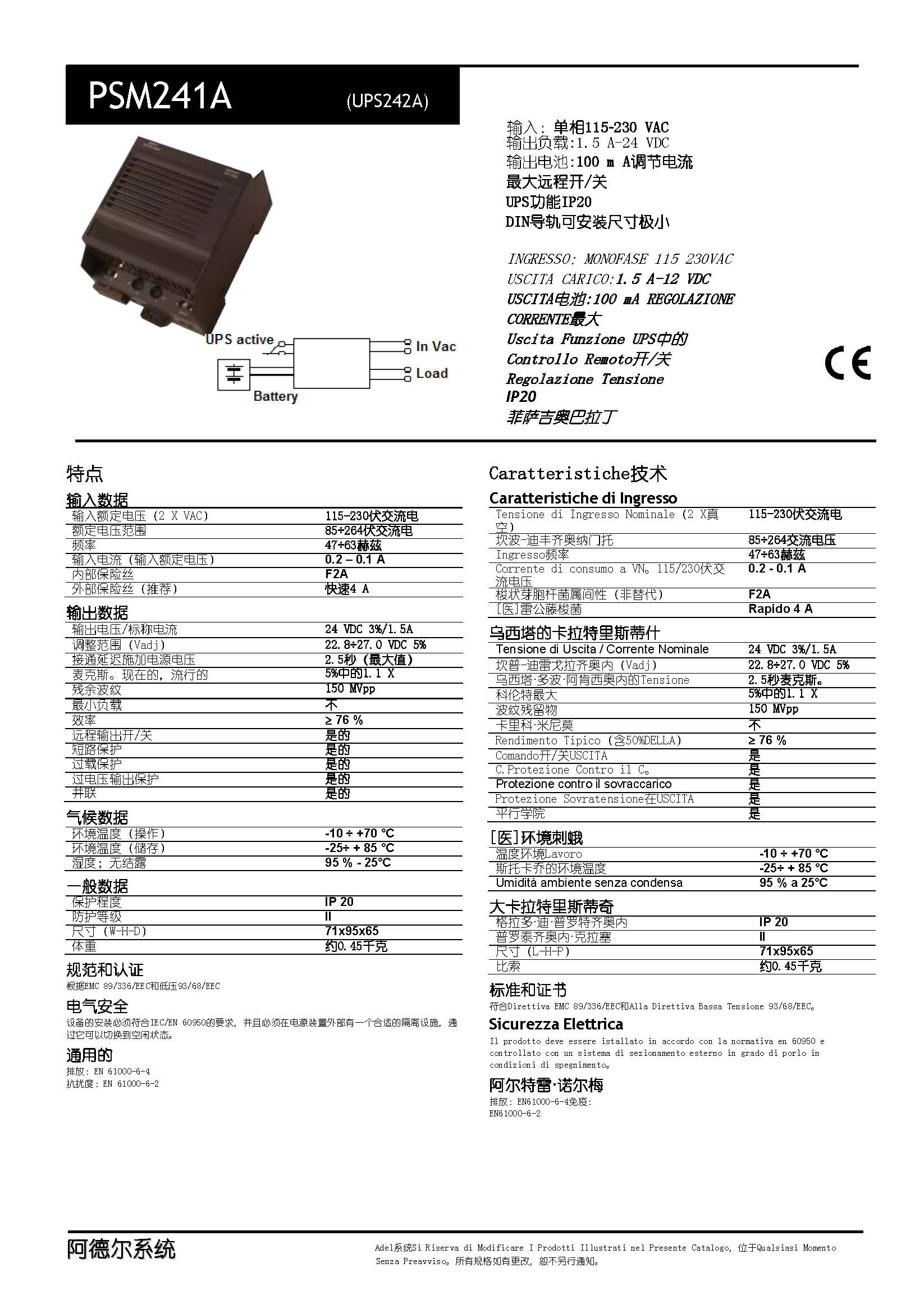 PSM241A Out Load? 24 V? 1.5 A; Battery 27 V ; 0.1A? D