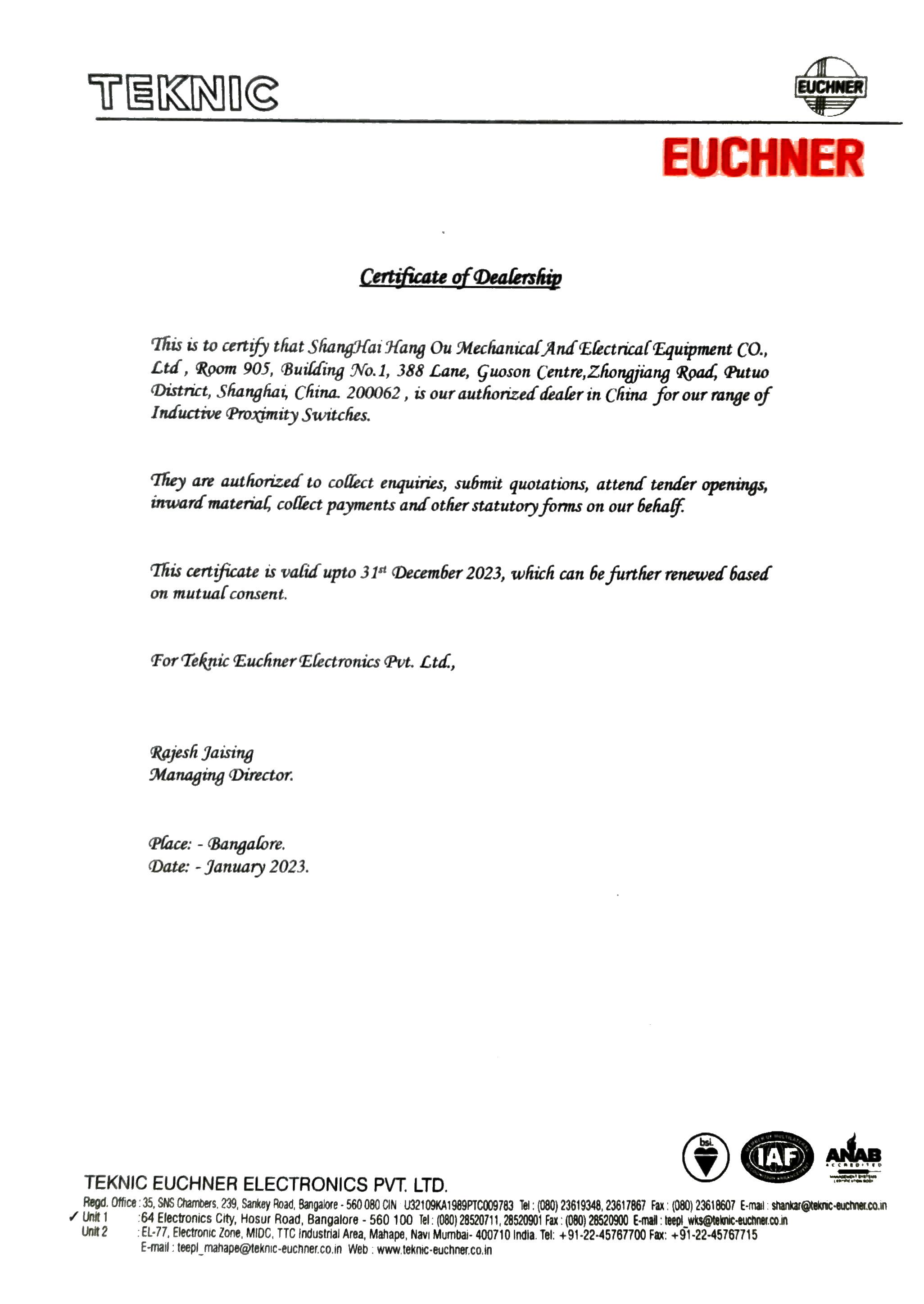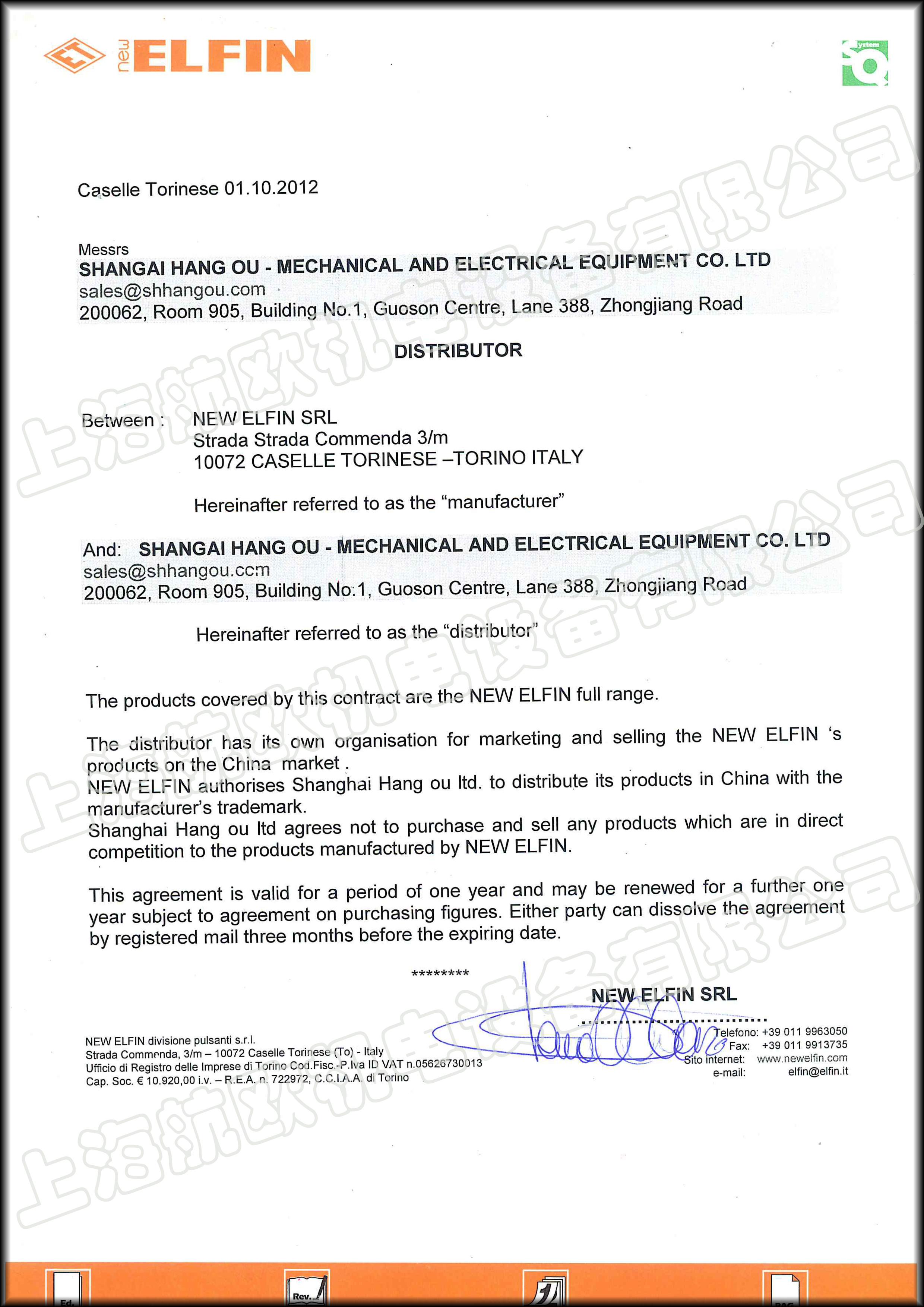 - ELECTRICFOR工廠授權上海航歐中國區代理