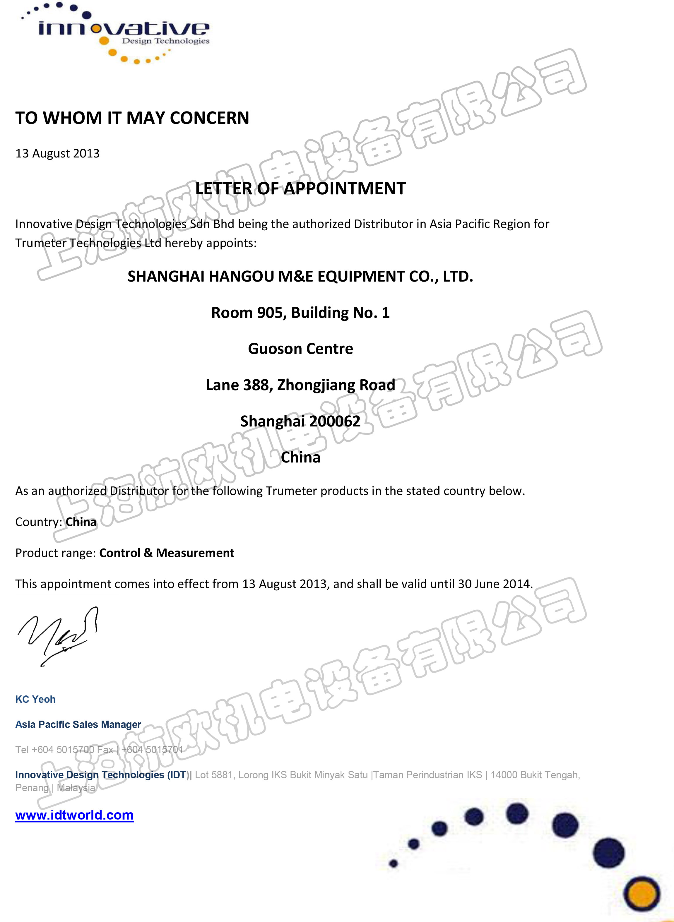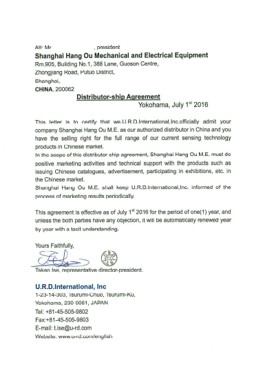 - Usdigital工廠授權上海航歐全權負責中國市場