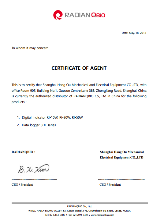 - RADIAN QBIO工廠授權上海航歐中國區代理