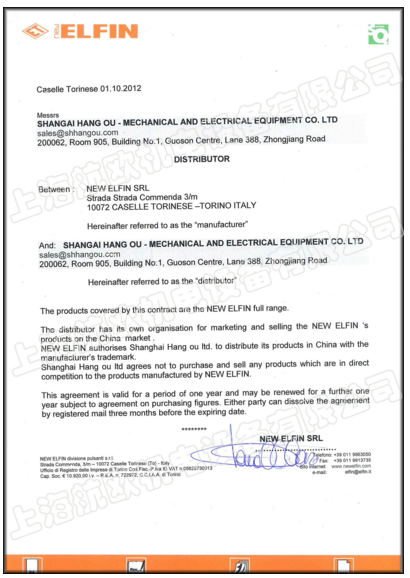 超過ELFIN雇用了50名員工,在其新的4000平方米的工廠制造8000的基本產品,從而增加12,000個條目時編目組裝。該公司享有一個全球性的銷售網絡,通過與用戶的溝通發生過無數的國際博覽會,重要的是上海航歐機電設備有限公司從事進口機電設備、儀器儀表等疑難備品備件的銷售,是經營世界各地進口設備的現代化企業。