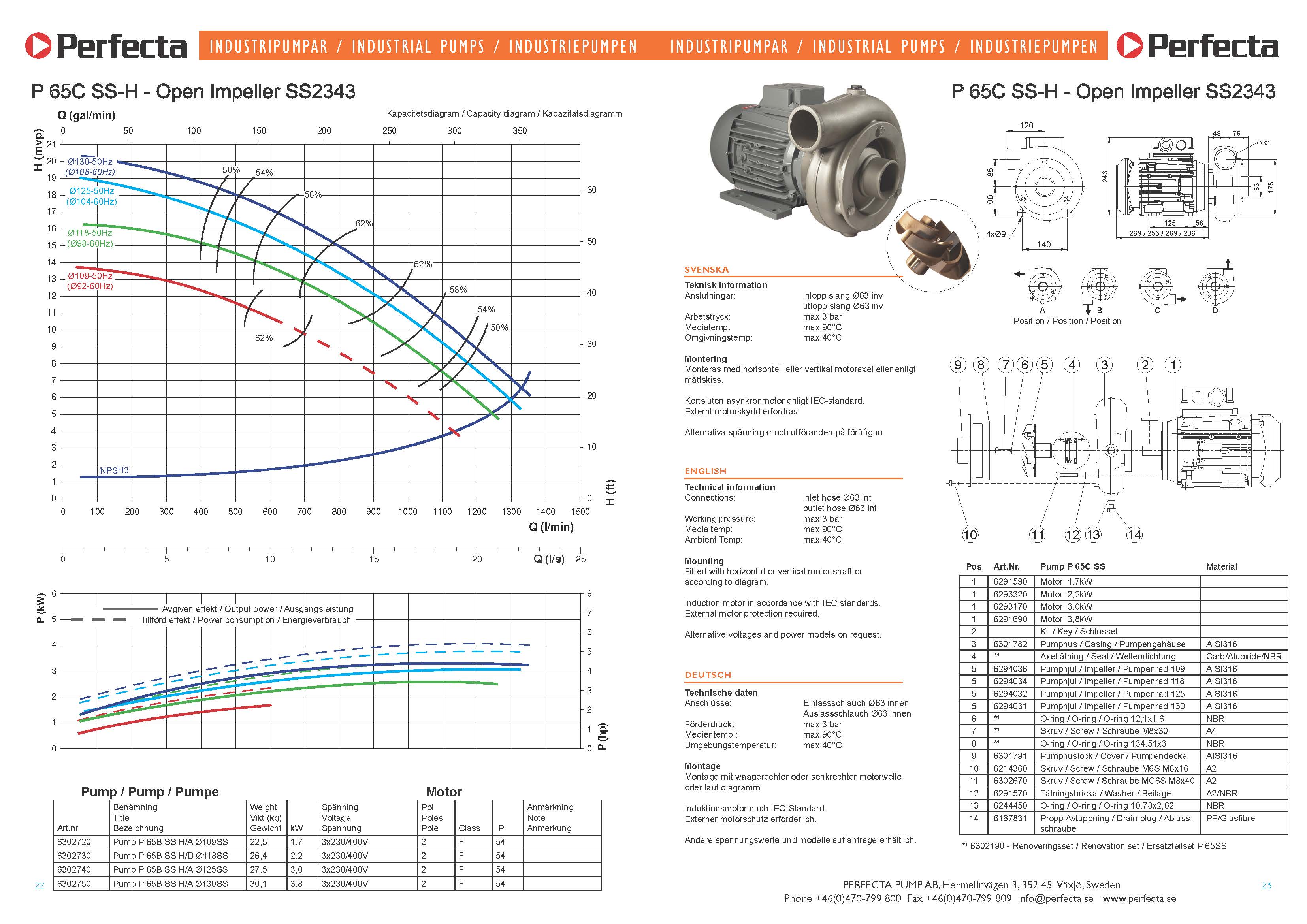Perfecta 泵Pump P 65C SS H/D-106-2,2kW 3×230/400V 50Hz ART NR: 6302690