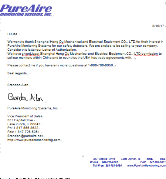 上海航歐銷售的美國PureAire監控是一家設計及生產各種氣體監控(測)器的公司。