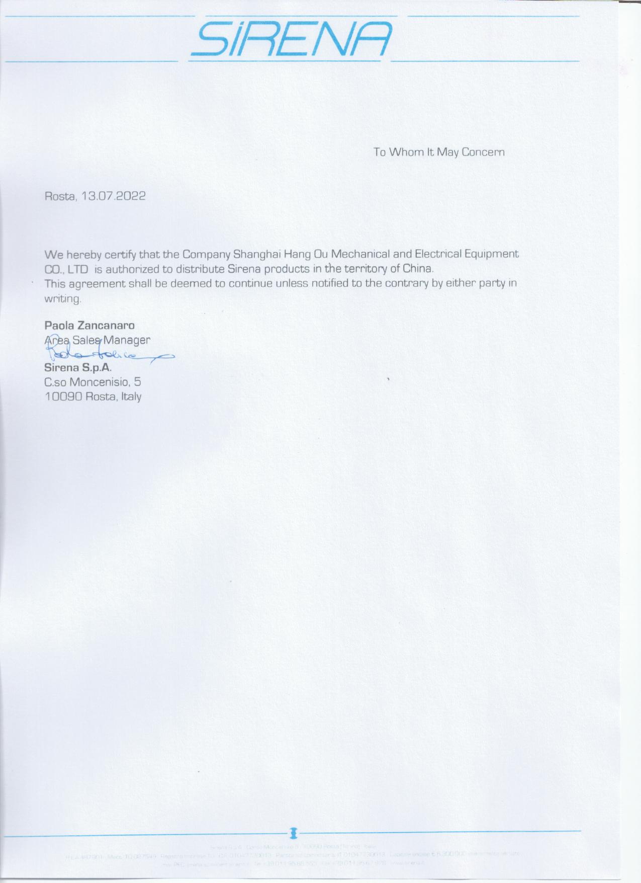2022年?SIRENA工廠上海航歐中國區代理