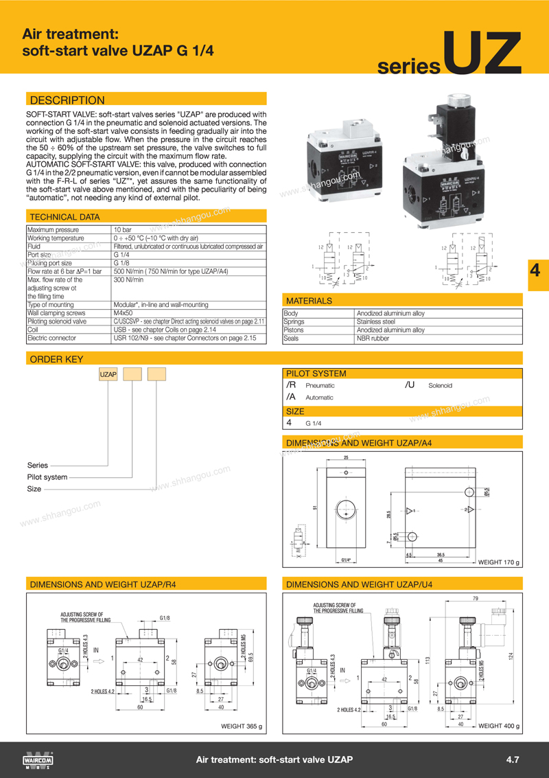 空氣處理產(chǎn)品:UZ系列(U**系列過(guò)濾器,UZRR系列減壓器,UZRRM系列過(guò)濾減壓器,UZL系列潤(rùn)滑器,UZAP啟動(dòng)閥,UZVL開(kāi)關(guān)閥及附件)、EZ系列、RRP系列(包括E**系列過(guò)濾器,EZRR系列減壓器,UZRR/F系列過(guò)濾減壓器,EZL系列潤(rùn)滑器,EZAP啟動(dòng)閥,EZVL開(kāi)關(guān)閥及附件)和RRP系列高精密度壓力調(diào)節(jié)器,各系列空氣壓力儀表及壓力開(kāi)關(guān)。