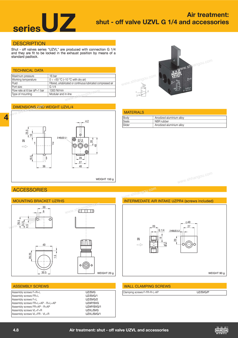 上海航歐銷售Waircom氣缸、Waircom閥、Waircom配件、Waircom減壓器