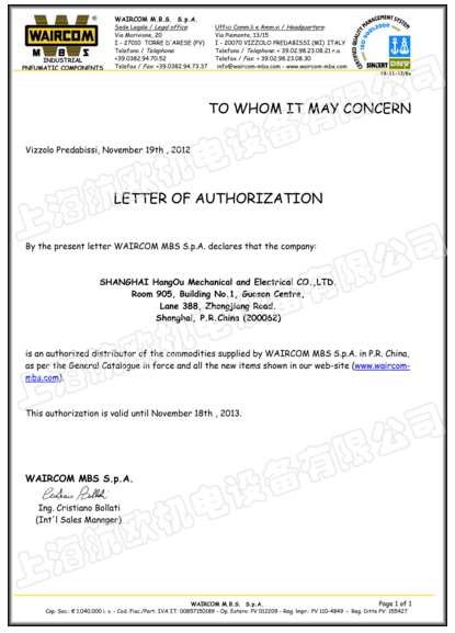 WaircomMBS集團(tuán)于1993年創(chuàng)建于意大利國(guó)際商貿(mào)中心–米蘭,十余年來(lái)一直專攻氣動(dòng)元件的研究和生產(chǎn),不斷向用戶提供優(yōu)質(zhì)產(chǎn)品。Waircom現(xiàn)已發(fā)展成為歐洲乃至世界的企業(yè)和品牌。