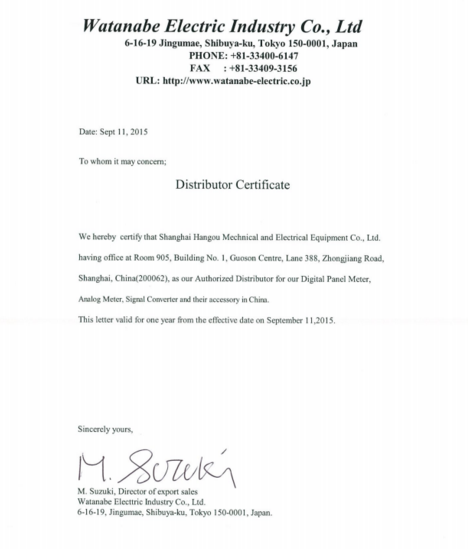 Watanabe傳感器Watanabe放大器Watanabe變送器Watanabe互感器Watanabe電表上海航歐機(jī)電設(shè)備有限公司從事進(jìn)口機(jī)電設(shè)備、儀器儀表等疑難備品備件的銷售,是經(jīng)營(yíng)世界各地進(jìn)口設(shè)備的現(xiàn)代化企業(yè)。
